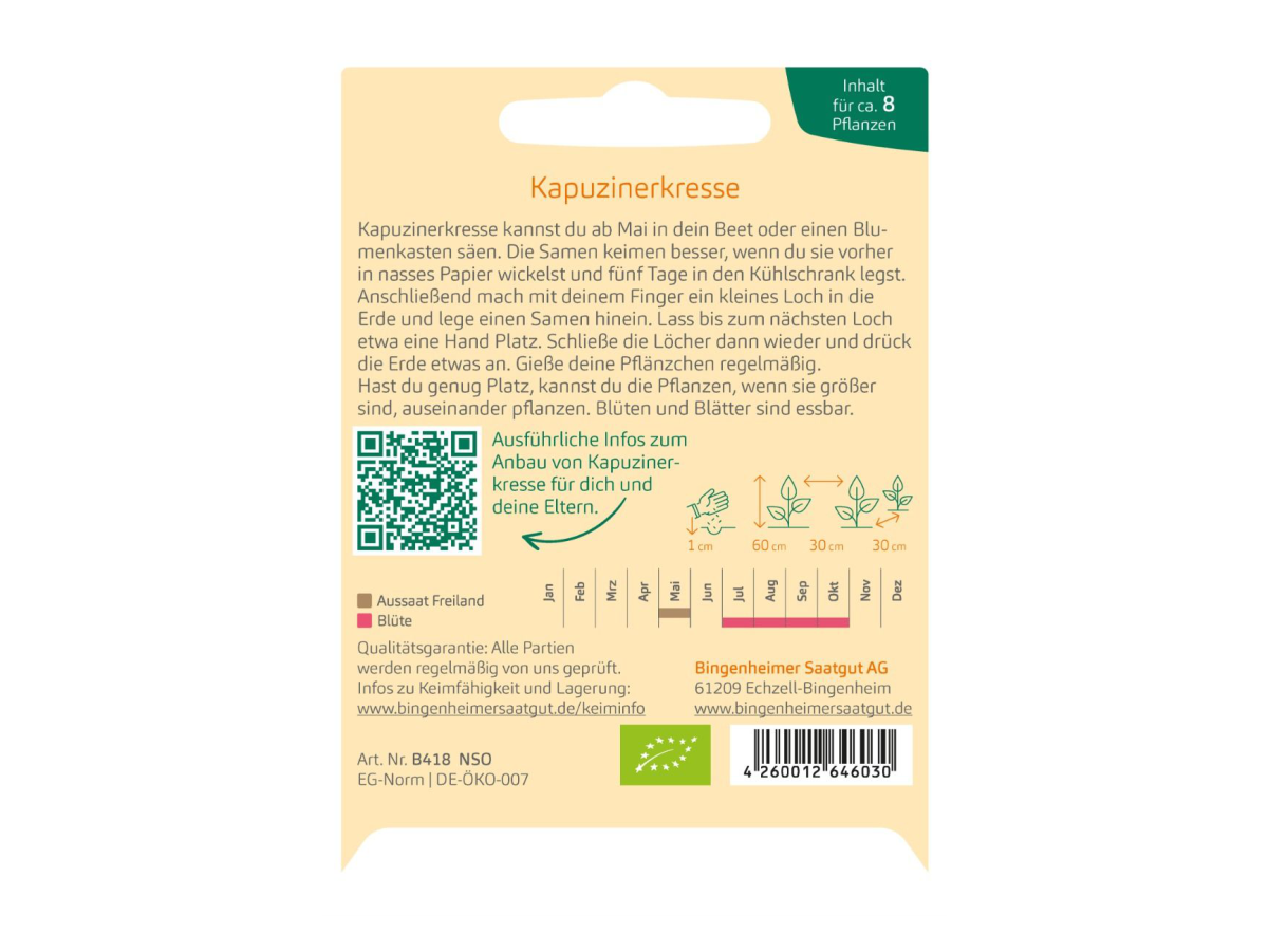 Kapucinke lahko sejete na gredo ali v cvetlični zaboj od maja dalje. Za boljšo kalitev semena zavijte v moker papirnati robček in jih pet dni hranite v hladilniku. Nato s prstom naredite majhne luknjice v zemlji, v vsako položite eno seme, med luknjami pa pustite približno razdaljo ene dlani. Luknjice nato prekrijte z zemljo in jo rahlo potlačite. Sadike redno zalivajte. Če imate dovolj prostora, lahko rastline kasneje presadite na večjo razdaljo, ko nekoliko zrastejo.