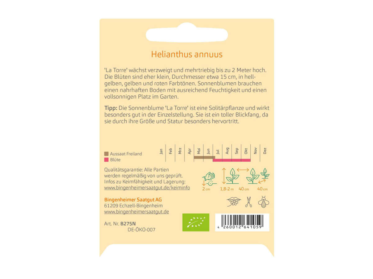 Sončnica ‘La Torre’ ima več stebel, se močno razrašča in zraste do približno 2 metra višine. Cvetovi so manjši, približno 15 cm v premeru, v bledo rumenih, rumenih in rdečih odtenkih. Odlična je kot rezano cvetje.