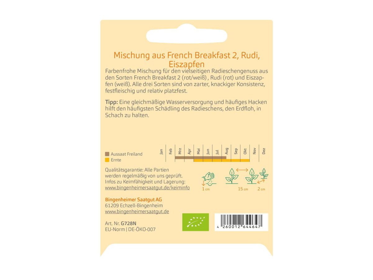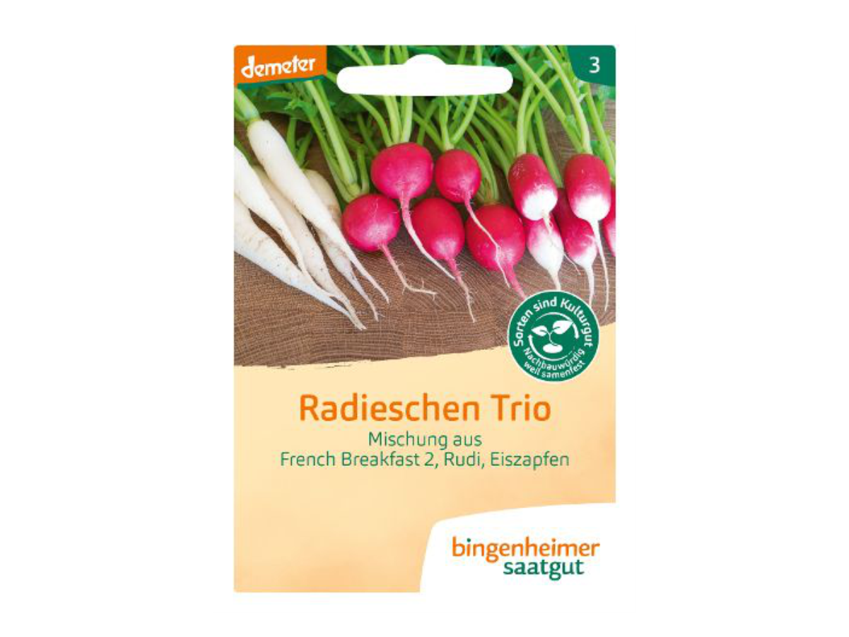 Barvita mešanica sort French Breakfast (rdeče-bela), Rudi (rdeča) in Eiszapfen (bela). Zelo vsestranske – odlične za solate ali kot dodatek na kruhu. Enostavne za gojenje in primerne za vsak vrt.